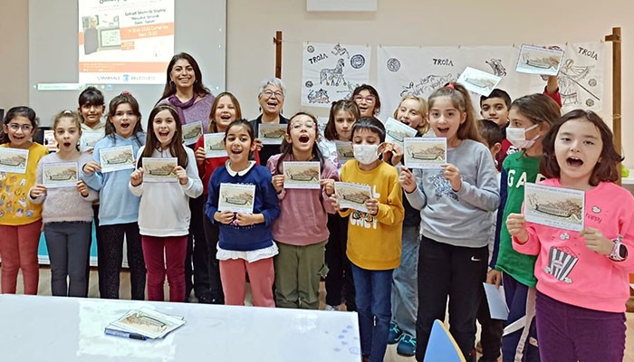 8 yaş ve üzeri çocuklarla Çocuk Kültür Evi sanat atölyesinde bir araya gelen Göksel Sevim, kendi sanat serüvenini paylaştığı keyifli sohbetin ardından seramik, minyatür ve baskı sanatlarının inceliklerine dair bilgi aktarımında bulundu. Sanatçı baskı sanatında kullanılan ekipmanları tanıtmanın yanı sıra, çocuklara kendisinin tasarladığı Troia kalıplarını, seramik ve minyatür çalışmalarını inceleme fırsatı da sundu. Usta sanatçı, katılımcı çocuklar için kendi özgün Troia desenleriyle bezenmiş bir anı kartı da imzaladı. Çocukların yoğun ilgi gösterdiği buluşma, kentin önemli değerlerinden Göksel Sevim’e Çanakkale Belediyesi adına çiçek takdimi ve toplu fotoğraf çekimi ile sona erdi.