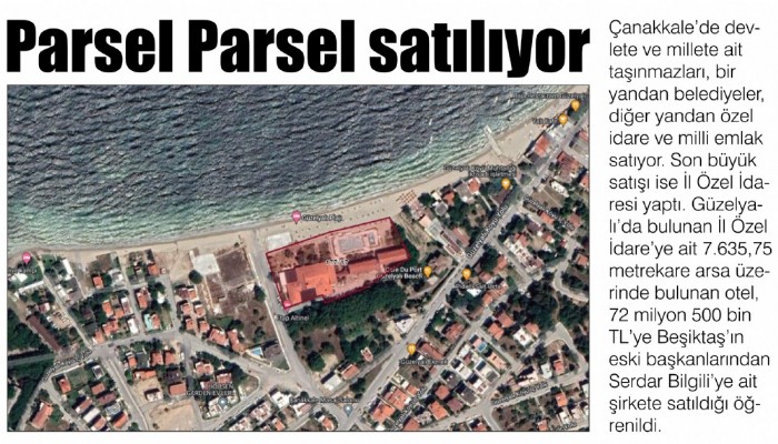 Son yıllarda Çanakkale’nin dört bir yanından devlete ve millete ait arsalar, işletmeler, binalar satışa çıkartılıyor. İlk başlarda en çok belediyelerin satışı göze çarpıyordu. Çanakkale’de AK Parti, CHP ve İYİ Partili belediyeler, mal varlıklarını sık sık satışa çıkartı ve satmaya devam ediyor. Adeta bir birleri ile yarışacak derece başlatılan satışlar çok tepki topluyor.