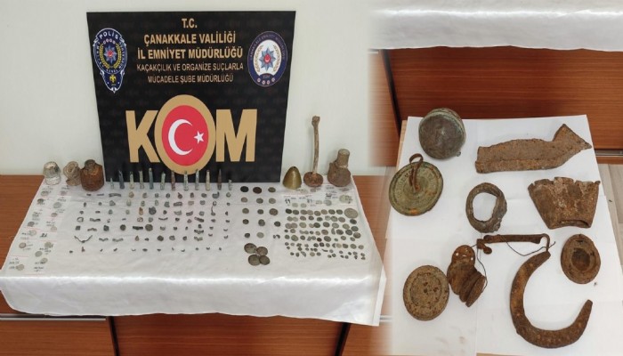 Alınan bilgiye göre; gelen ihbarları değerlendiren İl Emniyet Müdürlüğü’ne bağlı KOM Şube Müdürlüğü Kaçakçılık Suçları Büro Amirliği görevlileri, Tarihi Eser Kaçakçılığına yönelik olarak yapılan çalışmalar neticesinde; B. I isimli şahsın işyeri ve ikametinde arama yaptı. Yapılan aramada 120 adet üstünde figürler bulunan sikke, 112 adet metal objeler, 12 adet Çanakkale Savaşlarından kaldığı değerlendirilen boş kovanlar ele geçirildi.