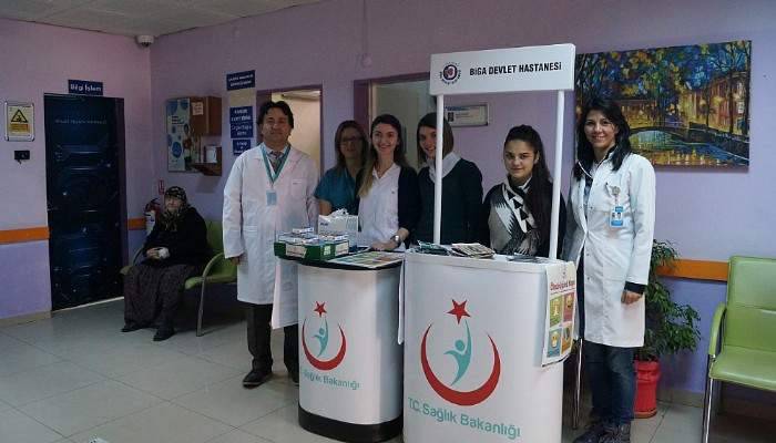 Bu etkinlikler çerçevesinde, Biga Devlet Hastanesi poliklinik katında hasta ve yakınlarına yönelik eğitim stantı açılarak, verem tanı, tedavi ve korunma yollarına yönelik bilgilendirme broşürleri dağıtıldı. Poliklinikte bulunan LCD ekranlardan belli aralıklarla yapılan Verem Halk Eğitimi Yayını ile toplumsal farkındalık oluşturulması amaçlandı. Ayrıca öksürüp, hapşırırken ağzın kapatılmasına dikkat çekmek için cep mendillerinin üzerine ‘Öksürüğünü Kapa’ temalı görsel ve yazılı mesajlar yapıştırılarak hasta ve yakınlarına dağıtıldı.