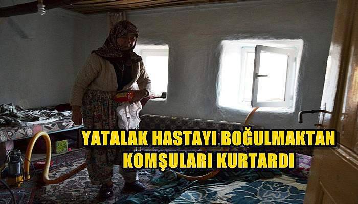 6 Ocak Cuma gününden beri etkili olan kar yağış sebebiyle eriyen kar sularının erimesiyle 70 yaşındaki yatalak hasta Durmuş Sahin'in evi sular altında kaldı.