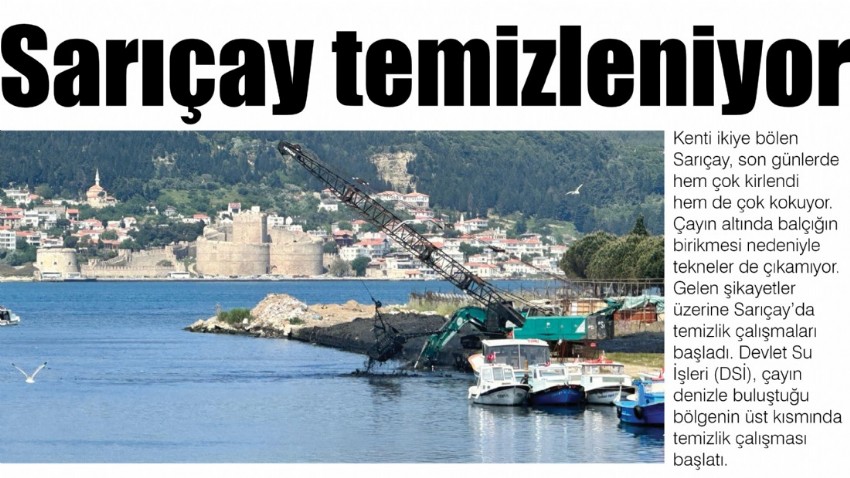 Kenti ikiye bölen Sarıçay, son günlerde hem çok kirlendi hem de çok kokuyor. Çayın altında balçığın birikmesi nedeniyle tekneler de çıkamıyor. Gelen şikayetler üzerine Sarıçay’da temizlik çalışmaları başladı. Devlet Su İşleri (DSİ), çayın denizle buluştuğu bölgenin üst kısmında temizlik çalışması başlatı.