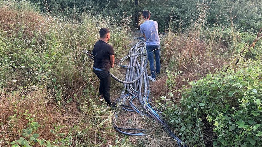 Olay yeri bölgesinde yapılan incelemelerde kesilerek taşımaya hazır gele getirilmiş 150 metre uzunluğunda kablo, penceresi kırılan kapalı alan içerisinde 350 metre uzunluğunda kablo olmak üzere 500 metre uzunluğunda piyasa değeri 1 milyon 700 TL olan yeraltı elektrik kablosu ele geçirildi.