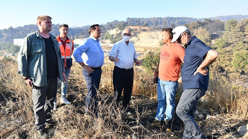 Yangın bölgesine düzenlediği inceleme gezisi kapsamında Başkan Gökhan, çöp deponi alanını da ziyaret ederek, yangına karşı alınan tedbirleri denetledi. Çöp deponi alanını Veolia Firma Sorumlusu Metin Suadiyeli ve teknik ekiple birlikte gezerek alınan tedbirleri yerinde inceleyen Başkan Gökhan, çalışmalara ilişkin bilgi aldı.
