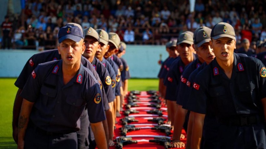 Saygı duruşunda bulunulması ve İstiklal Marşı'nın okunmasının ardından eğitimi tamamlayan acemi erler yemin etti.