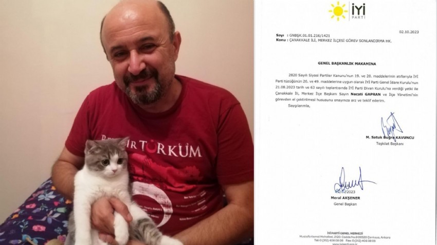 2 Ekim 2023 tarihinde İYİ Parti Teşkilat Başkanı Buğra Kavuncu ve İYİ Parti Genel Başkanı Meral Akşener’in imzasıyla görevden el çektirilen İYİ Parti Merkez İlçe Başkanı Necati Gapran, sosyal medya hesabı Facebook’tan imalı paylaşımlarda bulundu. 4 Ekim Dünya Hayvanları Koruma Günü’nde kedisiyle fotoğraf paylaşan Gapran; “Dünya üzerinde bazı mahlûkatı görünce, bu canlara hayvan demeye utanıyorum. Bence 4 Ekim Masum Dostları Koruma günü olsun” şeklinde iğneleyici bir paylaşımda bulundu.
