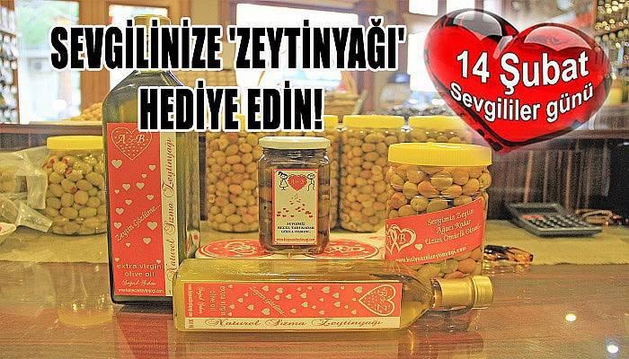 Balıkesir'in Edremit ilçesinde zeytin ve zeytinyağı üretimi ve satışı yapan Zafer Soykara 14 Şubat Sevgililer Günü öncesinde farklı bir hediye ile sevgisini ifade etmek isteyenlere bir alternatif sundu. Soykara'nın hazırladığı zeytinyağı, zeytin reçeli, zeytin, zeytin çiçeği kolonyası ve zeytinyağlı cilt kreminden oluşan sevgililer günü paketi büyük ilgi gördü. İnternet üzerinden satışı gerçekleştirilen ürün hakkında bilgi veren Soykara, Kazdağlarında yaşamış Afrodit'in güzellik iksiri zeytin ve zeytinyağından oluşan bir sevgililer günü paketi hazırladık. Bu ürünlerin sevgi ile bağlantısı biraz mecazi anlamda olacak ama, aşkınıza güzellik katabilmek için zeytinyağlı krem ve sabun. Aşkınızı ve sevginizin uzun ömürlü olabilmesi için zeytinyağı. Aşkınız daha tatlı yaşamanız ve güzel günler için zeytin reçeli bu hediye paketimizin içinde bulunuyor dedi.