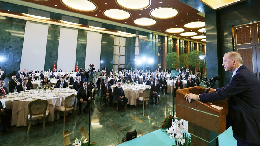 Dünyada, bölgede ve ülke içinde yaşanan zorlu süreçlerin ürünü olan sıkıntıların farkında olduklarını vurgulayan Cumhurbaşkanı Erdoğan, “Millî birlik ve bütünlüğümüzün düşmanı sosyal fay hatlarını bu defa yabancı ve İslam düşmanlığı üzerinden harekete geçirmeye çalışıyorlar. Küresel ve bölgesel krizlerin ürünü ekonomik dalgalanmaları insanları, hükûmetlerinin ötesinde, devletlerine düşman etmenin aracı hâline getirmeye çalışıyorlar. Sosyal medya gibi kontrolü küresel güçlerin elinde olan mecralarda dolaşıma sokulan yarısı yalan, yarısı yanlış haberlerle ülkeyi karıştırmaya çalışıyorlar” ifadelerini kullandı.