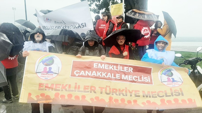 Geçinemediğimiz ,barınamadığımız ,kamusal hizmetlere erişemediğimiz bir ülkede, yurttaş olmanın getirdiği en temel haklarımızı kullanamadığımız bir ülkede yaşamanın direnmek olduğu bir kez daha gün yüzüne çıkmıştır. Bu sorumluluğun bir gereği olarak, Emekli Meclisleri Sendikası, Tüm Emeklilerin Sendikası ve Disk Emekli-Sen Çanakkale Şubeleri olarak eylem birliği yapma kararı aldık. Emeklilerin az da olsa nefes alabilmeleri için; Milli gelirin adil dağıtılarak, emeklilere insan onuruna yaraşır bir emekli maaşı ödenmesini, Emeklilerden kesilen muayene, tetkik, ameliyat ve ilaç katkı paylarının kaldırılmasını, Memur, SSK ve Bağ-Kur emeklileri arasındaki maaş ve statü farkı yaratılmasından vazgeçilmesini, Maaş bağlama oranlarının yeniden yüzde 70 oranı üzerine çıkarılmasını, Emeklilerin toplu sözleşmeli sendikal haklarının kabul edilmesini, Acilen istiyoruz” dedi.