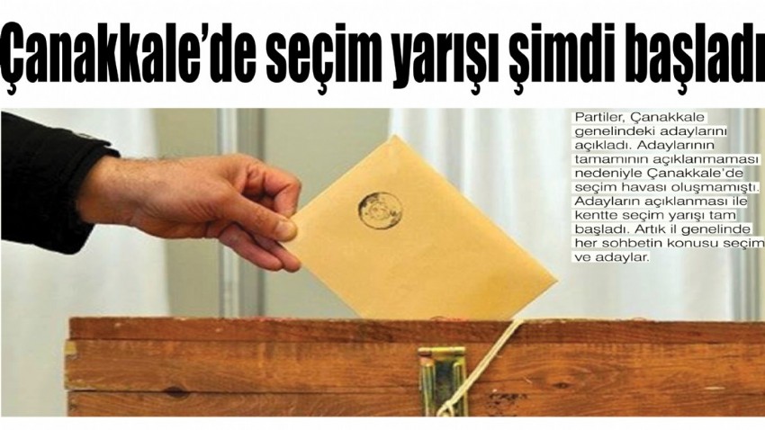 Partilerin adaylarını açıklaması ile beraber rakipler de bir birini tanımış oldu. Çanakkale merkez daha önce belli olmuştu. Geri kalan ilçe ve beldelerdeki adaylar da rakiplerini öğrenmiş oldu. Tüm adaylar belli olunca, seçim havası da değişti. Artık her ilçede ve her beldede bir hareketlilik var. İlçe ve beldelerdeki hareketlilik, Çanakkale merkeze de yansımış durumda. Şimdi tanıtım için adaylar geniş bir çalışma yapıyor. Kimisi afiş bastırıyor, kimisi proje üretiyor. Yapılan girişimler, görüşmeler kentte hareketlik getirdi.