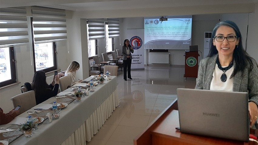 Atölye çalışmasında sunumu Doç. Dr. Hicran Özlem Ilgın yaptı. “Gazete Haberlerinde Kadın Temsili ve Etik Unsurlar” konulu sunumu yapan Ilgın, “Kadına Yönelik Şiddet Haberlerinin Sıfır Tolerans” projesinin dördüncü ayına geldik. Süreç hakikaten çok hızlı ilerliyor. Her ay bir eğitim hedefimizin tam anlamıyla tutturmuş durumdayız. Geçtiğimiz süreç içerisinde hem kadına yönelik şiddet haberlerinin kaleme alınmasında basın bağlamında, özellikle bizim hukuk süreçlerinde etkileyebilecek durumlar, olması gerekenler, etik unsurlar ve robotik uygulamalarla ilgili çeşitli eğitimler aldık. Temel olarak medyada kadının temsiliyle ilgili Genel bir bilgi vereceğim. Sözlerime başlarken her şeyden önce medyanın gücünden bahsetmek istiyoruz aslında. Medyanın toplumu şekillendiren, gündemi belirleyen diğer yandan toplumun zaman zaman ne düşünmesini ya da ne kadar süreyle düşünmesini, nasıl düşünmesini, medyanın o ekonomi politik kimliği üzerinde nasıl aslında yansıttığına göre kısaca bir bakacağız. Hem teoriler üzerinden bakmış olacağız. Dolayısıyla bu bağlamda da biz bu toplum üzerinde oluşan algıları, toplumun özellikle kadına yönelik sadece şiddet bağlamında değil, kadının toplum içerisinde, konumuna ilişkin, medyanın gücünden bahseder noktaya getireceğiz. Çalışmamızı temelde aslında biz gazetede, yani gazete haberlerinde diye aslında şemayı çiziyoruz ama medyayı işaret ediyoruz. Kadını nasıl temsil ettiğimiz ne ölçüde kadına aslında haberlerde yer verdiğimiz bütün bu temayı oluşturuyor. Yani meselesi sadece kadına yönelik şiddetin haber konusu, yapılması değil. Aynı zamanda kadının haberlerde yer alış biçimlerinin de aslında bir şiddet ifadesi taşıdığını hem görseller üzerinden, hem de metinler üzerinden şiddet ifadesi taşıdığını, aslında bu sunumda net bir şekilde çizmiş olacağız. Medyanın Gündem belirleme gücü var. Yani aslında biz medya kuruluşları olarak aslında bütün toplumun gündemini belirliyoruz dedik. Biz buna gündem belirleme kuramı diyoruz aslında. İletişim teorilerini anlatırken bundan belirleme kuramı diyoruz. Toplumun ne kadar süreyle, neyi ne ölçüde, nasıl düşürülmesi gerektiğine ilişkin aslında haberlerin veriliyor olması durumu medyanın aslında gücünü ortaya koyuyor. Dolayısıyla biz özellikle kadına yönelik şiddet çerçevesinde gündem belirleme gücünü çok etkili olduğunu, dolayısıyla toplumsal algıyı ciddi anlamda etkilediğini ortaya koyan araştırmalar olduğunu biliyoruz. Araştırmalar da bu çerçeveyi aslında net bir şekilde çiziyor arkadaşlar. Dolayısıyla medya gündemi belirlerken bunu haber biçimde sunuyor aslında. işte televizyon dizileri üzerinden de aslında veya herhangi televizyon programları üzerinden de birtakım bilgilerin aktarımı noktasında aslında kadına yönelik şiddetle karşı karşıya kaldığımızı biliyoruz.” dedi.