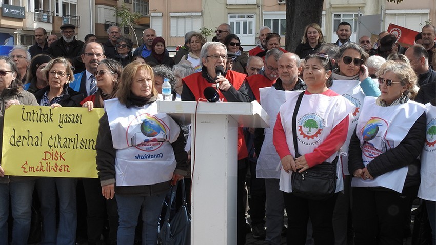 Emekli Meclisleri Sendikası Çanakkale Şubesi, Tüm Emekliler sendikası Çanakkale şubesi ve Disk Emekli sen Çanakkale şubesi yönetim ve üyeleri İskele Meydanı’nda toplandı. Emeklilere, CHP Çanakkale Milletvekili ismet Güneşhan, CHP Çanakkale Belediye Başkan adayı Muharrem Erkek de destek verdi. Eylemde ortak basın açıklamasını Disk Emekli Sen Çanakkale Şube Başkanı İrfan Kütüklü yaptı. Cumhurbaşkanı Recep Tayyip Erdoğan’ın da emekli maaşlarını yeterli bulmadığını kendi söylediğine dikkat çekten Kütüklü, Hazine katkılarıyla on bin liraya tamamlanan emekli aylıklarımızın yetersiz olduğu doğrudur” dedi. Kütüklü açıklama da şu cümlelere yer verdi. Sarayın istatistik uydurma kurumunun dahi bağımsız araştırma şirketlerinin üzerinde enflasyon oranları açıkladığı bir dönemden geçiyoruz. Dar gelirlilerin gıda enflasyonu ise resmi enflasyonun çok üzerinde seyrediyor. Biz emeklilerin gıda enflasyonu, yüzde 87,3 olmuşken Cumhurbaşkanı şöyle sesleniyor: “En düşüğü on bin lira olan emekli maaşı, ömrünü kendisinin ve ailesinin geçimi için harcamış vatandaşlarımız için yeterli mi? Elbette değil.” Ömrümüzü kendimizin ve ailemizin geçimi için harcadığımız doğrudur. Hazine katkılarıyla on bin liraya tamamlanan emekli aylıklarımızın yetersiz olduğu doğrudur. Ancak bu konuda sorumluluk üstlenmesi gerekenler, bir kez daha sorumluluktan kaçmakta; emeklileri sırtında küfe olarak görenler, tüm sorunların çözümünü işçinin ve emekçinin daha fazla çalışmasında aramaktadır. Şirketler karlarını katlarken işçilerin payına yoksulluk, saraylar ışıl ışıl parlarken emeklilerin payına sefalet düşüyorsa; ne sosyal devletten ne eşitlikten ne de adaletten ne de yaşamdan söz edilebilir. Tüm bunların sözünün edilmediği yerde barıştan söz etmek mümkün değildir!