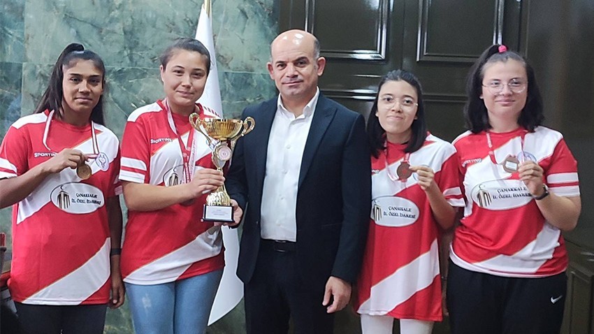 Ülkenin dört bir yanından gelen özel sporcuların katılımıyla gerçekleşen etkinlikte, Çanakkale’yi temsil eden Çan Zeynep Bodur Okyay Özel Eğitim Okulu’nun öğrencileri, sergiledikleri üstün performansla büyük bir başarıya imza attılar. Şampiyonada 35 ilden yaklaşık 300 sporcu yer aldı. Çanakkale’nin gururu olan Çan Zeynep Bodur Okyay Özel Eğitim Okulu öğrencileri, Genç Kızlar Atletizm Gülle Atma yarışmasında Türkiye Birinciliği’ni ve Genç Kızlar 3x3 Basketbol müsabakalarında Türkiye Üçüncülüğü’nü kazanarak, Çanakkale’nin adını başarıyla duyurdular. Başarılı sporcular, müsabakalar sonrası döndükleri Çan İlçesinde, gerçekleştirdikleri ziyaretler kapsamında Kaymakam Dr. Emre Nebioğlu’nu ziyaret etti. Ziyaret esnasında, Okul Müdürü Faruk Özkan, öğretmenler Recai Yılmaz ve Nevin Özdeş ile Özel Eğitim Öğretmeni Ceylan Öz de hazır bulundu. Öğrenciler, elde ettikleri başarılar hakkında Kaymakam Nebioğlu’na bilgi verdiler. Kaymakam Nebioğlu, öğrencilerin azim ve başarılarını övgüyle karşılayarak, onları ödüllendirdi ve başarılarının devamını diledi. Çanakkale’nin özel sporcularının gösterdiği bu büyük başarı, sadece bireysel çabanın değil, aynı zamanda ekip çalışmasının ve iyi bir rehberliğin de sonucu olarak değerlendiriliyor. Özel Eğitim Öğretmeni Ceylan Öz, öğrencilerin bu noktaya gelene kadar büyük bir emek sarf ettiklerini belirterek, “Bu başarı, öğrencilerimizin inancı ve düzenli çalışmasının bir sonucudur. Her bir öğrenci, kendi potansiyelini en üst düzeye çıkarabilmek için büyük bir özveri gösterdi” dedi. Kaymakam Dr. Emre Nebioğlu, ziyarette yaptığı konuşmada, Çanakkale’nin her alanda olduğu gibi spor alanında da başarılarını sürdürdüğünü vurgulayarak, “Özel sporcularımızın bu başarısı, tüm ilçemiz için büyük bir gurur kaynağıdır. Bu çocuklarımızın başarıları, diğer öğrencilere de ilham kaynağı olacaktır” ifadelerini kullandı. Nebioğlu, ayrıca sporculara verilen desteğin devam edeceğini belirterek, özel sporcuların gelecekte daha büyük başarılara imza atacaklarına inandığını söyledi. Çan Zeynep Bodur Okyay Özel Eğitim Okulu Müdürü Faruk Özkan ise, sporun öğrencilerin gelişiminde oynadığı önemli role değinerek, “Bu tür şampiyonalar, öğrencilerimizin kendilerini geliştirmeleri ve toplumda aktif bireyler olarak yer almaları açısından çok önemlidir. Spor, öğrencilerimizin hem fiziksel hem de zihinsel gelişimlerine katkıda bulunuyor” dedi. Özel Sporcular Atletizm Türkiye Şampiyonası'nda elde edilen başarılar, Çanakkale’de büyük bir sevinçle karşılandı. İlçeye dönen sporcular, aileleri ve arkadaşları tarafından coşkuyla karşılanırken, bu başarıların, gelecek yıllarda daha büyük başarıların habercisi olduğu düşünülüyor. Öğrencilerin gösterdiği bu üstün performans, hem okul yönetimini hem de aileleri gururlandırırken, aynı zamanda özel sporcuların toplumdaki yerinin ve öneminin de altını çiziyor. Konya’da gerçekleştirilen bu prestijli organizasyon, genç sporculara kendilerini gösterme ve ulusal platformda yarışma fırsatı sunarken, onların kişisel gelişimlerine de önemli katkılarda bulundu. Çanakkale’nin özel sporcularının kazandığı başarılar, sadece yerel bir gurur kaynağı olmakla kalmayıp, aynı zamanda özel sporcuların neler başarabileceğinin de en güzel örneğini sergiliyor.