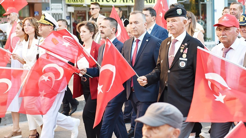 İlk olarak Cumhuriyet Meydanı’ndaki Atatürk Anıtı’na Çanakkale Valisi İlhami Aktaş tarafından çelenk konuldu. Saygı duruşu ve İstiklal Marşı okunmasının ardından protokol üyeleri ve vatandaşlar, 15 Temmuz Şehitleri Sancak Koşusu ve Milli Birlik Yürüyüşü'ne katıldı. İskele Demokrasi Meydanı’nda devam eden program kapsamında Kıyı Emniyeti Genel Müdürlüğü’ne ait römorkörler su gösterisi yaptı.