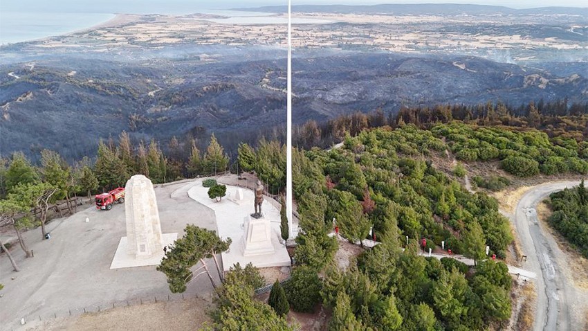 Yangın nedeniyle Anzak Koyu’nun olduğu bölgeden Conkbayırı’na kadar alan yanarak kül oldu. Yangın, tarihi alanları yakarken bölgedeki zararların tespi de yapılıyor.