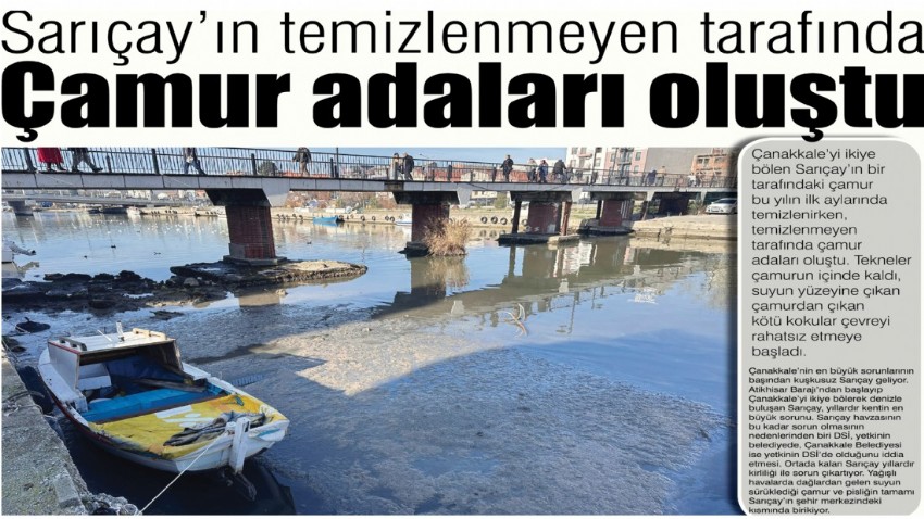 Kirliliği ile sık sık tepkilere neden olan Sarıçay’da bu yılın ilk aylarında temizlik çalışması yapıldı. Çanakkale Belediyesi’nin de desteği ile temizlik çalışması DSİ tarafından yapıldı. Aylarca devam eden temizlik çalışmasında çayın şehir merkezi tarafındaki kısmı temizlendi. Diğer tarafı ise işletmeler, bazı bölgelerinde ağaçlar bulunduğu için kepçe ve kamyonlar girmeyince temizlik çalışması yapılmadı. Bu bölge temizlenmediği için su biraz çekilince çamur da dışarı çıktı. Çay havzasının bir bölümünde adeta çamur adaları ve yarımadaları oluştu. Bu bölgedeki tekneler de çamura batmış durumda. Su yüzüne çıkan çamur balçığı havanın biraz ısınması ile beraber balçık kokmaya başladı. Şimdi çevre hem kokudan geçilmiyor hem de balıkçılar teknelerini ava çıkartamadığı için mağdur odu.