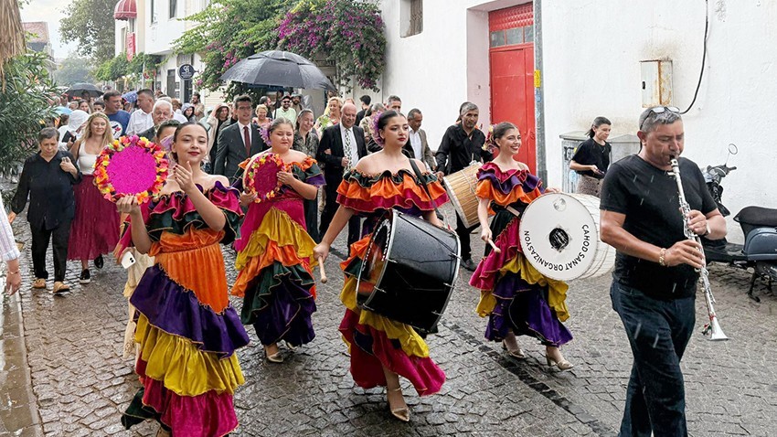 Kortej yürüyüşüyle başlayan festivalin açılışında, adanın kültürel mirası, bağcılık geleneği ve şarap üretimindeki tarihsel önemi bir kez daha vurgulandı. Programda, en iyi üzüm üreticilerine ödülleri verilirken, halk oyunları ekiplerinin renkli gösterileri katılımcılardan büyük alkış aldı.