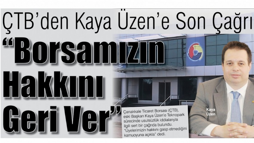 Çanakkale Ticaret Borsası’nda eski Başkan Kaya Üzen hakkında Teknopark yönetimiyle ilgili tartışmalar yeniden gündeme geldi. Borsa Meclis Başkanı tarafından yapılan yazılı açıklamada, Üzen’in görev süresinde borsanın önalım hakkını gizleyerek şahsi çıkar sağladığı öne sürüldü.