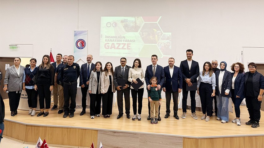 “Bazı sessizlikler vardır ki, bir halkın değil, bütün insanlığın yüreğini susturur. Gazze, işte o sessizliğin artık bittiği yerdir. Gazze’nin gökyüzü karanlıkken, dünyanın hiçbir yerinde adalet tam değildir. Bu topraklardan, Çanakkale’den, Ezine’den yükselen her ses insanlığın ortak vicdanına dokunmalı. Çünkü bu ülke, mazlumun sesine kulak vermeyi, zalimin karşısında dimdik durmayı tarihinin bir parçası yapmıştır. Bizim medeniyetimiz adaleti korumayı, merhameti yaşamayı ve vicdanı diri tutmayı öğütler. O yüzden bugün burada konuşulan her cümle sadece bir konuşma değil; insanlığın onuruna verilen bir sözdür.”