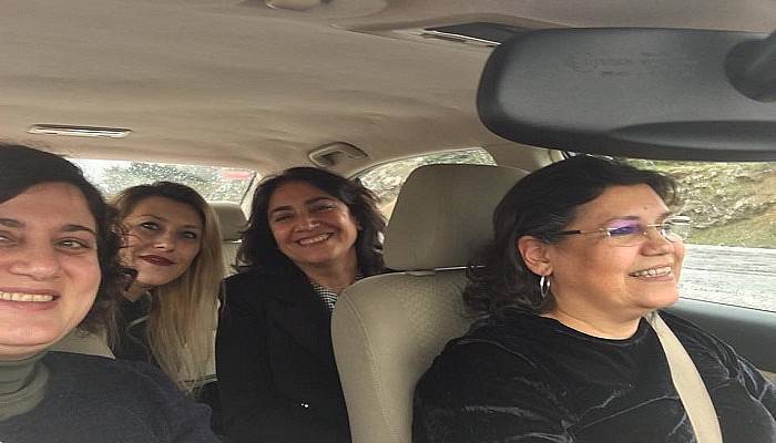 Arabada çektikleri fotoğrafları sosyal medya hesabında paylaşan bayanlar, altına da "Geyikli yolunda" notunu da düşerek nereye gideceklerini de öğrenmiş olduk.