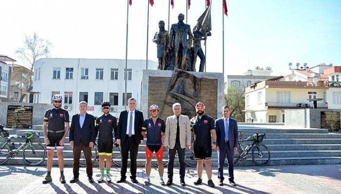 Sporcuları, Manavgat Kaymakamı Nazmi Günlü ve Manavgat Belediye Başkanı Şükrü Sözen yolcu etti. Mehmet Dağkır, Ufuk Anatca, İsmail Arkan ve Yusuf Akkuş’dan oluşan bisiklet ekibi, bin 50 kilometre boyunca şehitler için pedal çevirecek. 8 günlük yolculuğun ardından şehitliğe toprağı bırakacak olan bisikletçiler, Manavgat Belediye Başkanı Şükrü Sözen’e desteğinden dolayı teşekkür etti. Sporculara kask ve bisiklet selesi hediye eden Manavgat Belediye Başkanı Şükrü Sözen, Çanakkale’ye giden bisikletçilere iyi yolcuklar diledi. Başkan Sözen "Bisikletçi dostlarımız şehidimiz Ahmet Ozan Şarlak’ın toprağını atalarımızın ebedi istiratgahına bırakmak için yola çıkıyor. Dostlarımıza iyi yolculuklar dilerken, bize bu cennet vatanı bırakan aziz şehitlerimizin hatıraları önünde de saygıyla eğiliyorum" dedi.