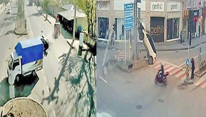 Emniyet Genel Müdürlüğü (EGM), Türkiye genelinde MOBESE kameraları tarafından kaydedilen kazalara ait görüntüleri paylaştı. Kazalarda trafik kurallarının hiçe sayıldığı ve dikkatsizliğin nelere mal olabileceği gözler önüne serildi. Çanakkale’de direksiyon hakimiyetini kaybeden sürücü, yolun ortasında bulunan sinyalizasyon direklerini devirdi. Jipin ise şaha kalkması yoldan geçenler tarafından şaşkınlıkla izlendi. Kaza sadece maddi hasarlı olarak atlatılırken, yaşanan başka bir kazada ise virajı alamayan otomobil, uçtuğu tarlada taklalar atarak durabildi.