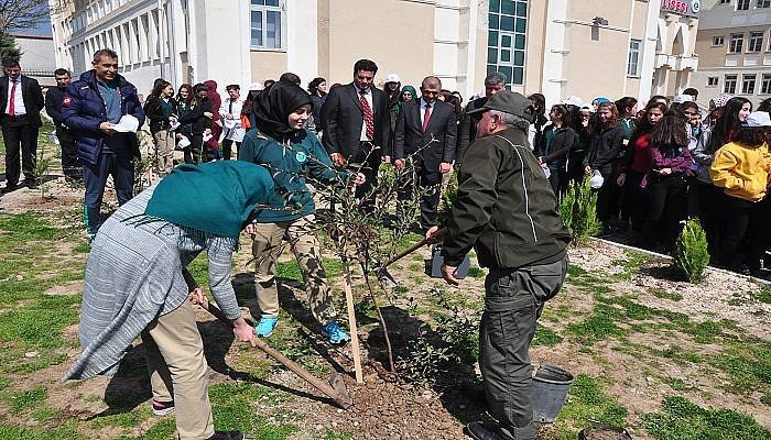 Okul bahçesinin ağaçlandırılması çalışması kapsamında Ayvacık Orman İşletme Müdürlüğü ile Ayvacık Fen Lisesi’nin düzenlediği etkinlikte öğrenciler okul bahçesine kara selvi, mazı, akasya, dişbudak, dağ muşmulası ve fıstık çamı fidanlarını okulun belirli yerlerine dikimini gerçekleştirdi. Ayvacık Fen Lisesi’nde düzenlenen etkinliğe katılıp burada öğrencilere bir konuşma gerçekleştiren Ayvacık Belediye Başkanı Mehmet Ünal Şahin, “Bölgemiz Kazdağı’nın eteklerinde yer alan bir bölge. Bölgemiz endemik bitkiler bakımından da zengin bir bölge olmasından dolayı doğanın çeşitliliğini görmek mümkün. Bu doğal güzellikleri korumak ise sadece yerel yönetimlerin değil, aynı zamanda herkesin görevi. Ormanlarımıza sahip çıkmamız gerekiyor. Bunun için özellikle öğrenim çağımızdaki çocuklarımıza bu görevi okul yıllarında vermemiz gerekiyor. Bugün burada öğrencilerimizle fidan dikimini gerçekleştireceğiz. Gelecekte daha güzel bir doğa için fidanlar dikeceğiz. Hem öğrencilerimiz de yıllar sonra buraya geldiğinde bu ağacı da biz diktik diyecek. Bunlar güzel ve anlamlı durumlar” dedi. Ayvacık Orman İşletme Müdür Vekili Mustafa Merih Aydın da bu tür fidan dikim etkinliklerinin Orman Haftası boyunca süreceğini ifade etti.