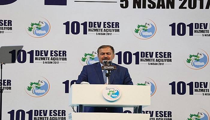Bakan Prof. Dr. Veysel Eroğlu, Atatürk Voleybol Vestel Venüs Arena'da Orman ve Su İşleri Bakanlığı tarafından yaptırılan 101 tesisin açılış merasiminde, bereketli bir gün yaşadıkları İzmir'de bugün 1 milyar 800 milyon liralık yatırımın hizmete aldıklarını belirtti.