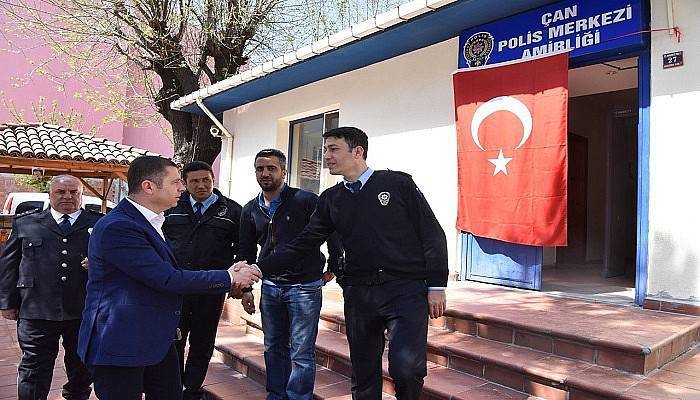 ziyaret ettik. Çanımızda ki huzur ve güveni tesis etmek için canla başla çalışan polislerimizle hasbihal ettik. Çanımızın, güvenli, huzurlu bir ilçe olabilmesi için büyük bir özveri ile mücadele eden Çan İlçe Emniyet Müdürlüğü’nde görev yapan tüm polislerimizin, Polis Haftası’nı kutluyorum. Halil İbrahim Eriç kardeşimiz gibi bugüne dek ve yakın zamanda şehit olan polislerimize Allah’tan rahmet diliyorum” dedi.