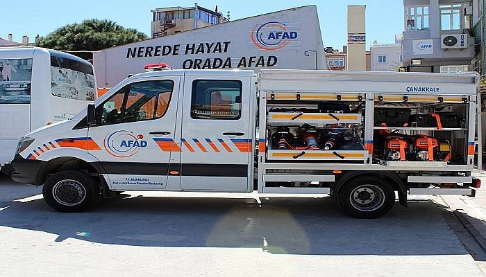 Çanakkale AFAD'a, Başbakanlık Afet ve Acil Durum Yönetimi Başkanlığı tarafından, müdahale kapasitesinin artırılması, deprem, sel, heyelan, çığ, suda boğulma gibi tüm afet ve acil durumlarda daha hızlı ve etkin arama kurtarma operasyonlarının yürütülebilmesi amacıyla hafif tonajlı arama ve kurtarma aracı tahsis edildi.
