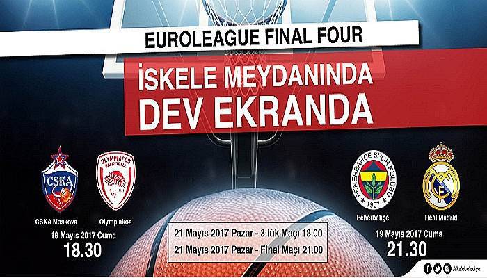 Bu yıl ülkemizden Fenerbahçe’nin de katıldığı basketbol maçlarını İskele Meydanına kurulacak olan led ekrandan takip edebilirsiniz. Bu kapsamda 19 Mayıs 2017 Cuma günü saat 18.30’da CSKA Moskova-Olympiakos karşılaşması, yine 19 Mayıs 2017 Cuma günü saat 21.30’da Fenerbahçe – Real Madrid karşılaşması ile 21 Mayıs 2017 Pazar günü saat 18.00’de 3.’lük maçı ve aynı gün saat 21.30’da final maçını İskeledeki dev ekrandan izleyebilirsiniz.