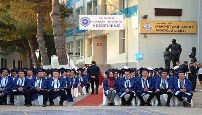 Okul bahçesinde düzenlenen tören, saygı duruşunda bulunulması ve İstiklal Marşının okunmasıyla başladı. Okul Müdürü Fikret Can, törende yaptığı konuşmada, yarım asırdan fazla Biga’da başarıyla hizmet veren okulun bu yıl 104 öğrenciyi mezun ettiğini söyledi. Can, “Bu yıl akademik başarıların yanında 48. TÜBİTAK orta öğretim kurumları proje yarışmalarına bölge finali sergisine ilçemizden katılan tek okul biziz. Bu hafta atletizmde 9. sınıf öğrencimiz Hasan Can Türkiye yedincisi oldu. Daha bunun gibi bir çok başarıya öğretmenlerimiz ve öğrencilerimizle imza atacağımıza inanıyorum " diye konuştu. Konuşmanın ardından okul birincisi Olcay Taşkın, başarı kütüğüne plaket çaktı. Daha sonra okulu dereceyle bitiren öğrencilere diploma ve hediyeleri verildi. Törene, İlçe Milli Eğitim Müdürü Erkan Bilen, okul müdürleri, öğretmenler, öğrenciler ve veliler katıldı.