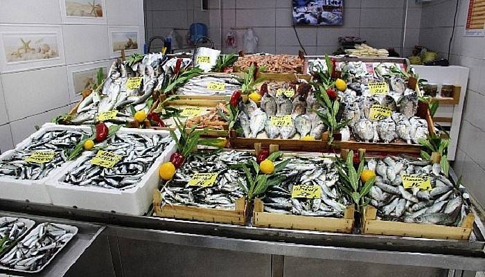 Balık halinde, sardalya 10, karagöz 30, mezgit 35, levrek 30, yeşil istavrit 25, izmarit 15, karides 30, kupa 20 liradan satılıyor.