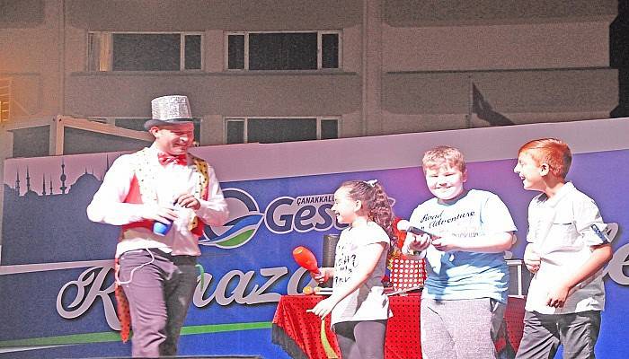 Ramazan ayının ilk gününden itibaren İskele Meydanı’nda oluşturulan iftar alanında vatandaşlara doya doya ramazan yaşatan GESTAŞ’ın Ramazan Günleri, birbirinden farklı etkinliklerle devam ediyor. GESTAŞ Ramazan etkinliklerinin 12'nci gününde de Çanakkaleliler iftar sonrasında eğlenceli vakit geçirdi. Okunan ezanla birlikte açılan oruçların ardından, Grup Alaturka Band Fasıl Ekibi sahneye çıktı. Çanakkalelilerin kulaklarının pasını silen fasıl ekibini ardından sahneye çıkan sihirbaz, gösterileriyle çocukların olduğu kadar büyüklerin de ilgisini çekti. Sihirbazın sahneye çağırıp gösterilerine yardımcı olmasını istediği çocuklar, unutamayacakları anlar geçirdi. Hemen ardından başlayan ateş dansı gösterisi ise, etkinliklere katılan vatandaşları büyüledi. Gerçekleştirilen Aşık ile Maşuk gösterisi ise vatandaşları eski ramazanlara götürerek izleyenlere nostaljik anlar yaşattı. Ardından sahneye çıkan ÇAFAD’ın yöresel danslarıyla birlikte izleyiciler keyifli vakit geçiren Çanakkaleliler, güzel geçen bir ramazan etkinliğinin daha sonuna geldi.