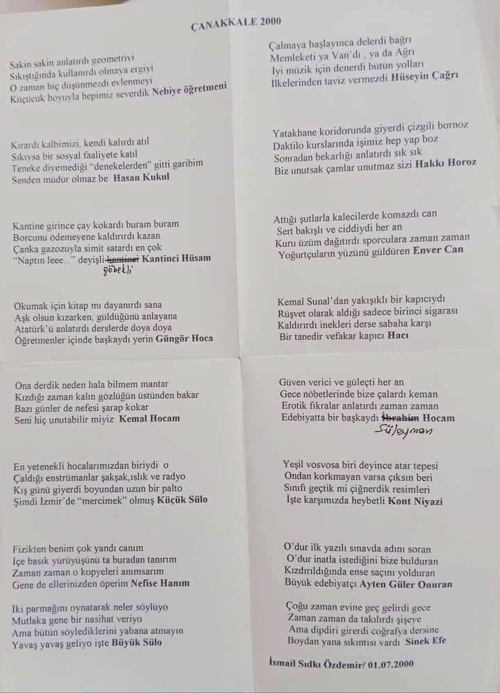 Mezuniyetimizin ellinci yılında, Çanakkale Erkek İlköğretmen Okulu hakkında bir arkadaşımızın yazdığı şiir...