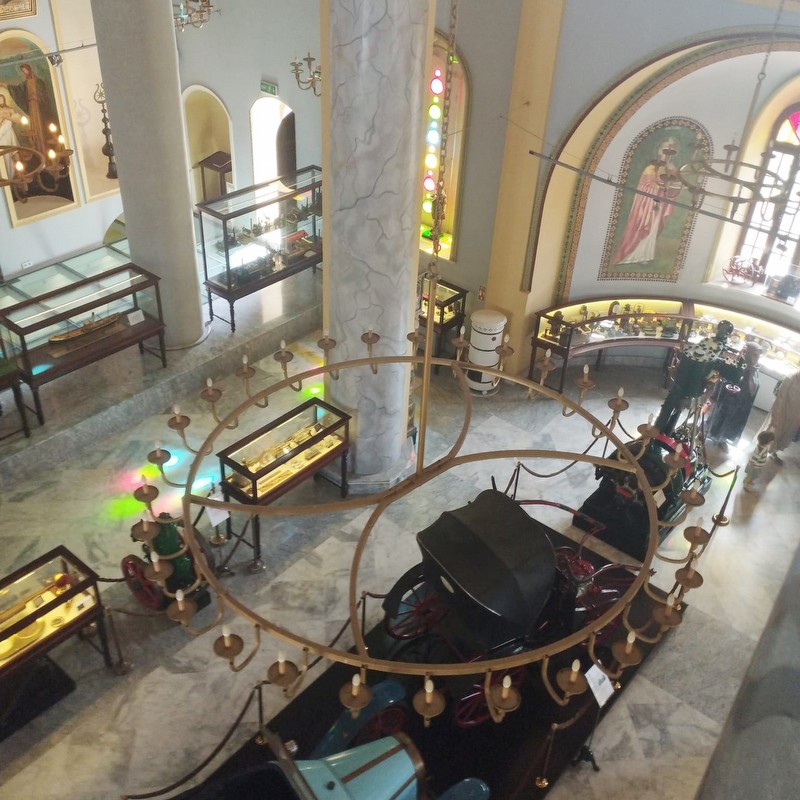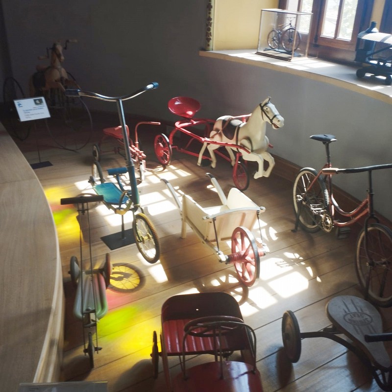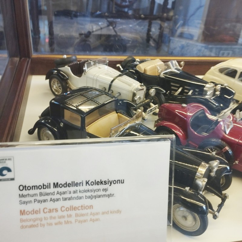 Müzede İstanbul ve Ankara’daki Rahmi M. Koç müzelerinin envanterleri temel alınarak teneke oyuncaklardan buharlı mekanik modellere, bebek arabalarından zaman ölçüm aletlerine uzanan geniş bir koleksiyon sergilenmiş.